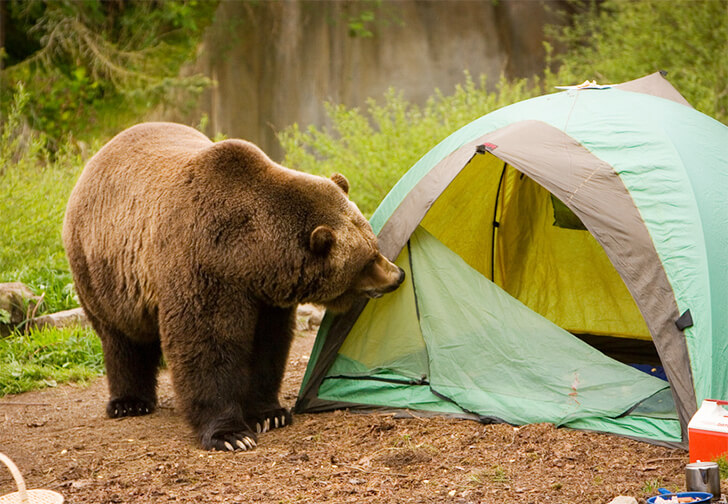 In einem Zelt auf einem Campingplatz könnte es jemanden geben, der in der Früh aufwacht und feststellt, dass sein geliebter Teddybär fehlt. Doch anstatt des kleinen, kuscheligen Freundes sieht er beim Aufwachen einen riesigen, echten Bären direkt vor sich.