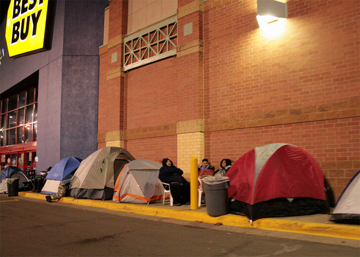 Camping ist für viele mehr als ein Naturerlebnis – es ist auch ein rituelles Event für all jene, die auf der Jagd nach den besten Deals sind. Jedes Jahr sieht man sie, ausgerüstet mit Zelten, vor den Eingängen großer Geschäfte lagern, bereit für satte Rabatte direkt bei der Eröffnung.