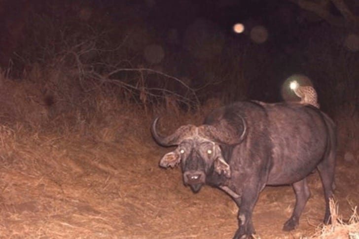 Wäre es euch auf den ersten Blick aufgefallen? Auf diesem majestätischen Tier relaxt ein kleiner, vierpfötiger Frechdachs. Beim ersten Hinsehen sieht man nur einen gigantischen Büffel, seine imposanten Hörner und den direkten Blick in die Kamera. Da ist man gleich dankbar, dass man ihm nicht zufälligerweise im Dunkeln begegnet ist.