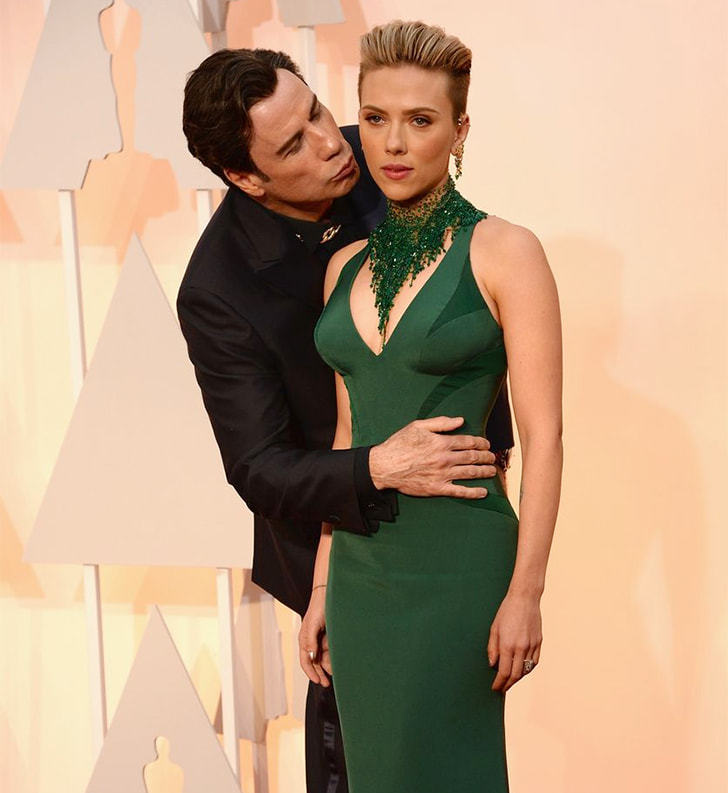 When John Travolta decided to give Scarlett Johansson a cheek kiss while she struck a pose at the Oscars, it turned into a viral red carpet moment. Dressed in an emerald Versace gown at the 2015 Academy Awards, Scarlett was momentarily taken aback but quickly regained her composure like the pro she is.
