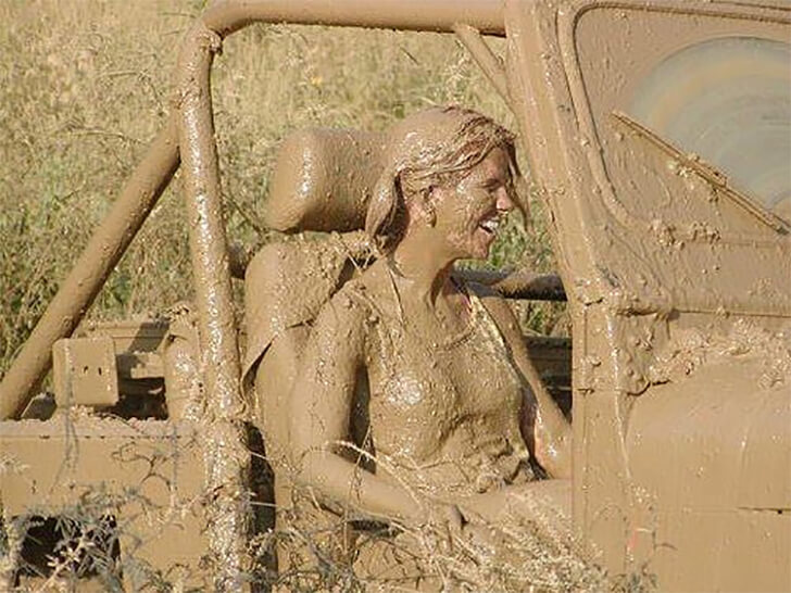 Es ist immer wieder erstaunlich, wie manche Situationen anscheinend recht spaßig sein können und man am Ende, vor allem mit Humor, allem lachend entgegenblicken kann. Sie und ihr Gefährt sind vollkommen mit Schlamm bedeckt und doch hat sie immer noch die Gabe, sich an dieser verrückten Situation zu erfreuen.