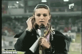 Diese rumänische Journalistin wurde, wie viele ihrer Kollegen und Kolleginnen, während ihrer Berichterstattung von einem Fußball getroffen. Sie ließ dabei nicht nur nicht das Mikrofon fallen, was verständlich gewesen wäre, sondern machte mit ihrer Berichterstattung weiter, als wäre nichts passiert!