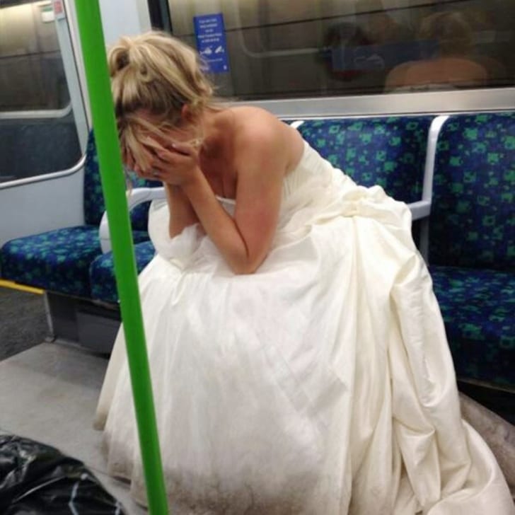 A woman in a wedding dress on the subway is a sight you don’t see every day. She’s sitting alone with her face buried in her hands, making onlookers speculate about the situation. Is she overcome with joy, or is it the aftermath of a night too wild to remember?
