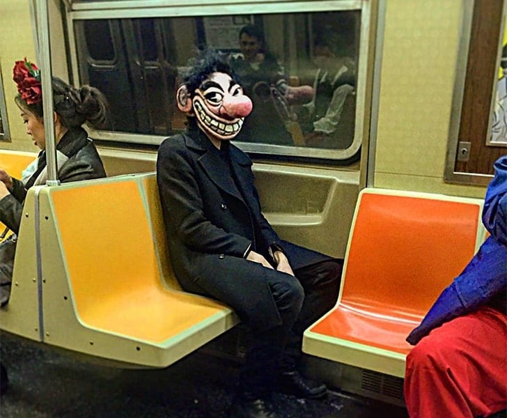 Seeing someone on the subway dressed in a way that stands out is nothing new, but a man wearing a mask straight out of “The Purge” movie definitely raises eyebrows. This mask, associated with a night of lawlessness and chaos depicted in the film, creates an air of unease.