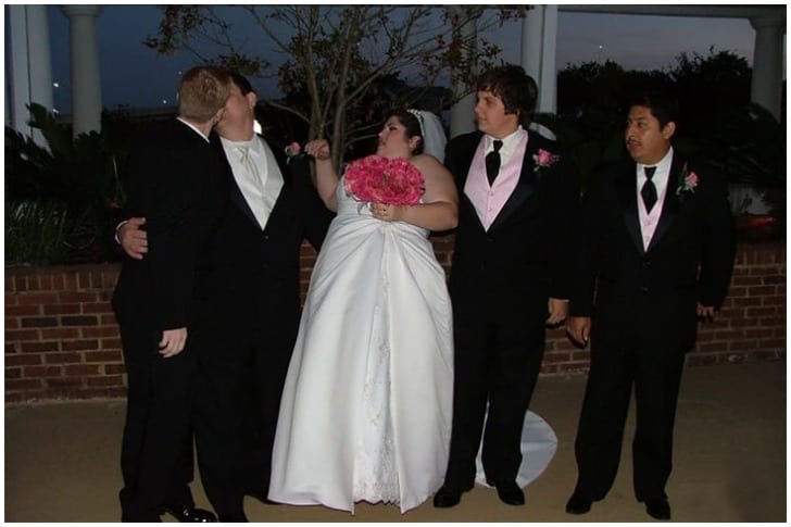 Osäkert om detta var en vadslagning eller på riktigt men det resulterade åtminstone i en märklig bröllopsbild. Vi vet ännu inte historien bakom hela händelsen men det vi kan se är att brudgummen inte kysser sin brud, utan en man som står bredvid honom. På hennes chockade ansiktsuttryck ser det ut som att hon inte var med på planerna, och vi skulle verkligen vilja höra hela historien.