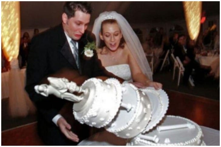 Vi behöver inte sticka under stolen med det faktum att bröllopstårtor har en tendens att ha ett rätt så saftigt pris, så man vill verkligen ta vara på sin fina tårta. Ett bröllop i sig är inte billigt, och trots att tårtan inte är lika dyr som klänningen eller kostymen, har den en rejäl prislapp. Detta brudpar hade under sin lyckliga dag knappast räknat med att de inte skulle få smaka på sin dyra tårta, eftersom den åkte rakt ner i marken.
