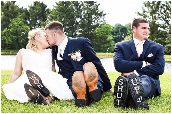 Innan den bästa vännen finner kvinnan i sitt liv, är det du som är en allra bästa vännen för honom, och betyder allting i världen. Så att de uppstår alla typer av känslor på ett bröllop är inte alls konstigt. I den här bilden kan vi tydligt se att det istället var bruden och inte den bästa vännen som “vann” honom, men åtminstone gjorde de det hela till en rolig grej med sina skor.