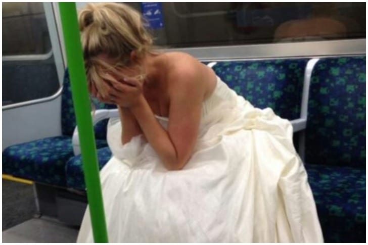 Det finns nog en orsak till varför denna bruden är så ledsen på sin stora dag, men vem vet, kanske är hon ledsen eftersom hon var tvungen att ta bussen. Oavsett orsak hoppas vi bruden finner lycka.