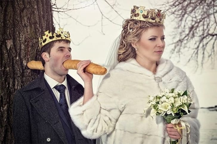 De valde att fokusera på löftet “tills döden skiljer oss åt” och trots att man allt som oftast inte ser dödsfall av bröd var det något detta finurliga par valde att fokusera på i sin speciella bröllopsbild.
