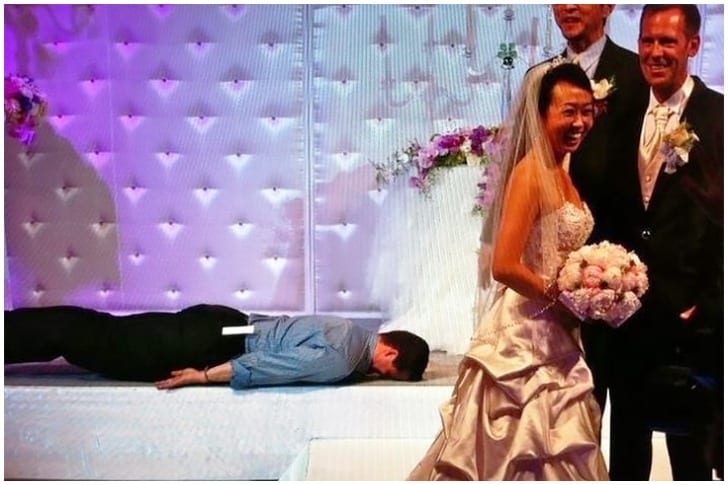 Internet är fullt av olika utmaningar man kan ta sig ann, dock valde denna man att göra en utmynna under ett bröllop. Osäkert om det var plankutmaningen han valde att göra, men som vi kan se ligger han helt stilla på marken bakom brudparet. Vad vi även kan se är att brudparet verkar vara överlyckliga och skratta åt situationen, så för dem blev det en minnesvärd händelse.