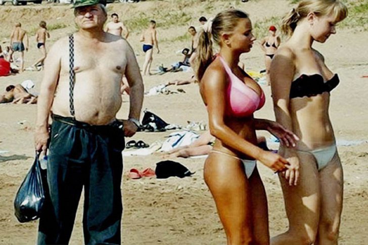 In this captivating snapshot of beach life, a vibrant scene unfolds with an amusing twist. Here is a picturesque shoreline, adorned with people from various categories. On one side, sun-kissed girls confidently strut in their fashionable bikinis, radiating a contagious beach vibe.