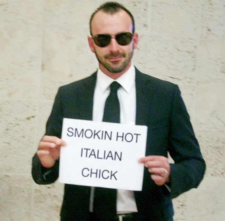 In an airport, where hellos and goodbyes are as common as the flights themselves, one man decides to elevate the art of greeting. Decked out in a classic black suit and sunglasses, he awaits his wife’s arrival, armed with a sign that humorously breaks from convention.