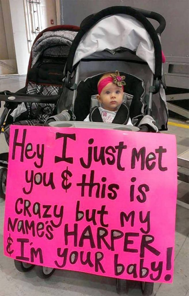 Within the lively corridors of an airport, an extraordinary encounter is set to unfold. Harper, seated comfortably in her stroller, is on the brink of greeting her military father for the very first time. Ingeniously, her mother employs the charm of a well-loved melody to introduce them, crafting an endearing and light-hearted message.